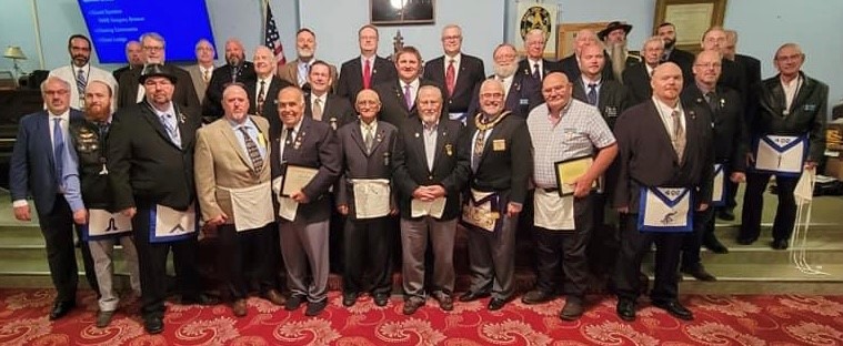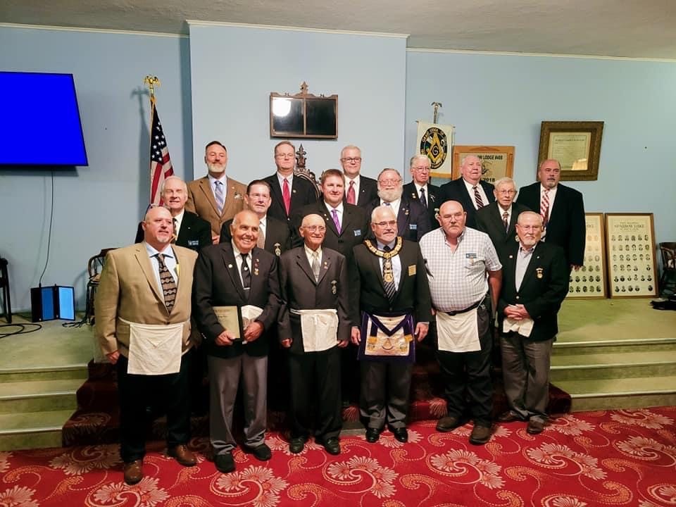 2021 September 21 – Our regular stated meeting included a Past Master Appreciation night. Eighteen of our past masters were in attendance and were presented a certificate with their year(s) of service and a lapel pin. We had a great night of food & fellowship. Pictured are sixteen of our past masters with Deputy Grand Master Timothy S. Wheeland.